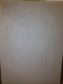 The very first life drawing session of the course involved the group performing multiple different timed studies of our life model. Trying to keep in proportion with each drawing and if I ran out of time use small hints to illustrate details that were not yet finished.